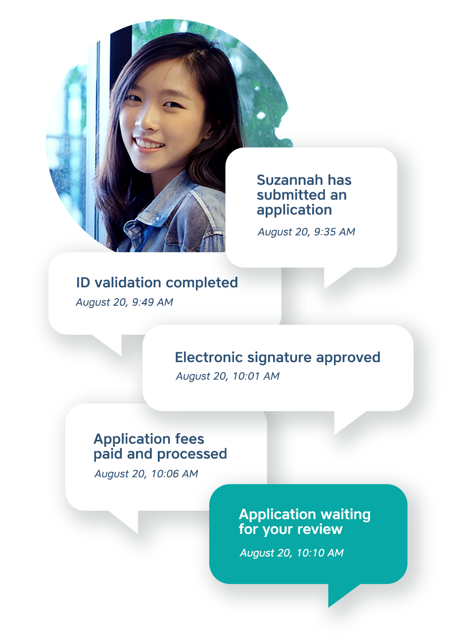 You can also validate identity with an integrated third-party provider, and add addendums and other forms to the application.