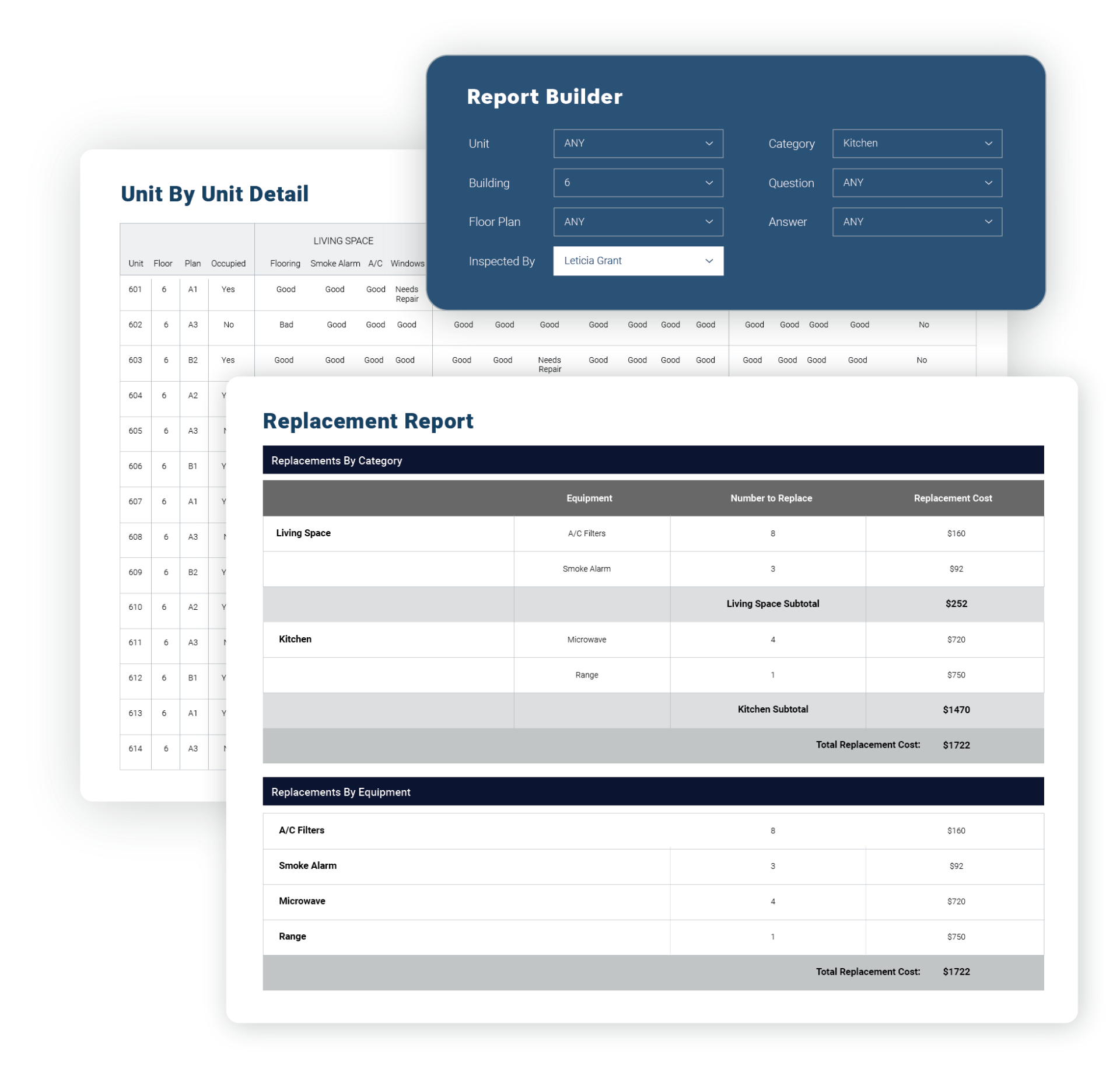 Our comprehensive dashboard enhances decision making by providing both snapshot and in-depth inspection reporting. The dashboard also offers a report builder with a wide range of customization options that allow you to design reports to exactly fit your needs. Share reports with owners, regional managers and your onsite team by using the Microsoft Excel and PDF export buttons.