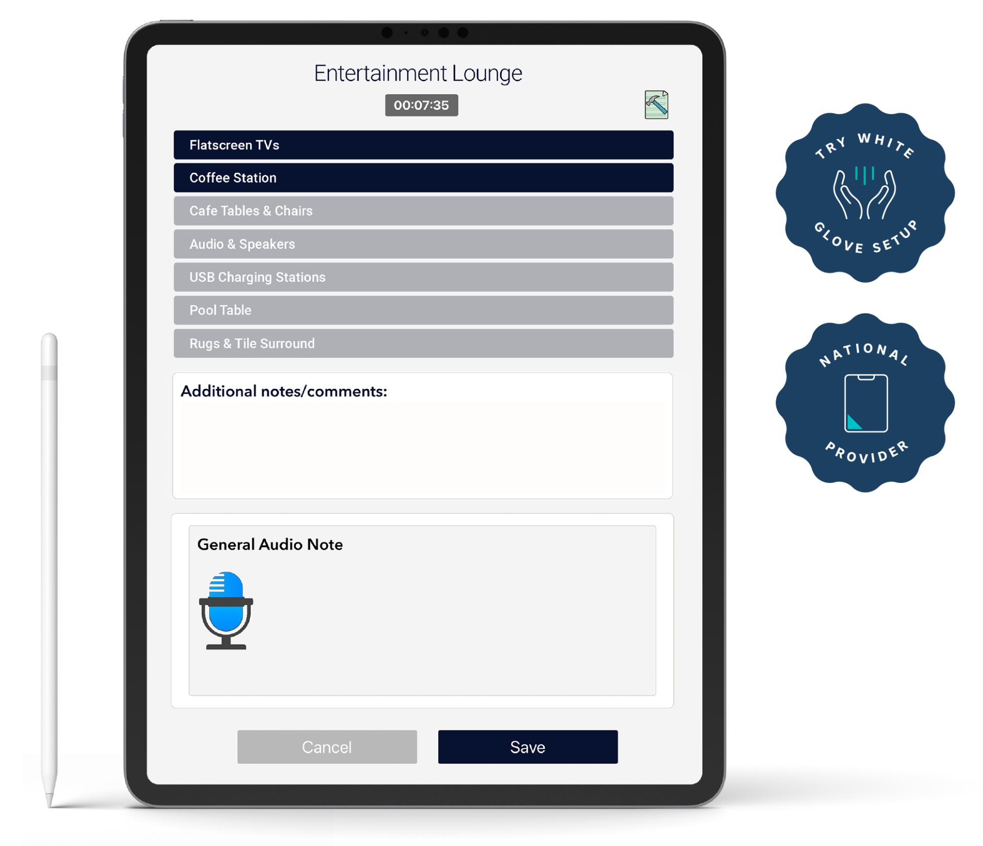 We can provide tablets that come pre-installed and ready to go with all your data. All we need to get started is your rent roll, unit mix and items to tally.