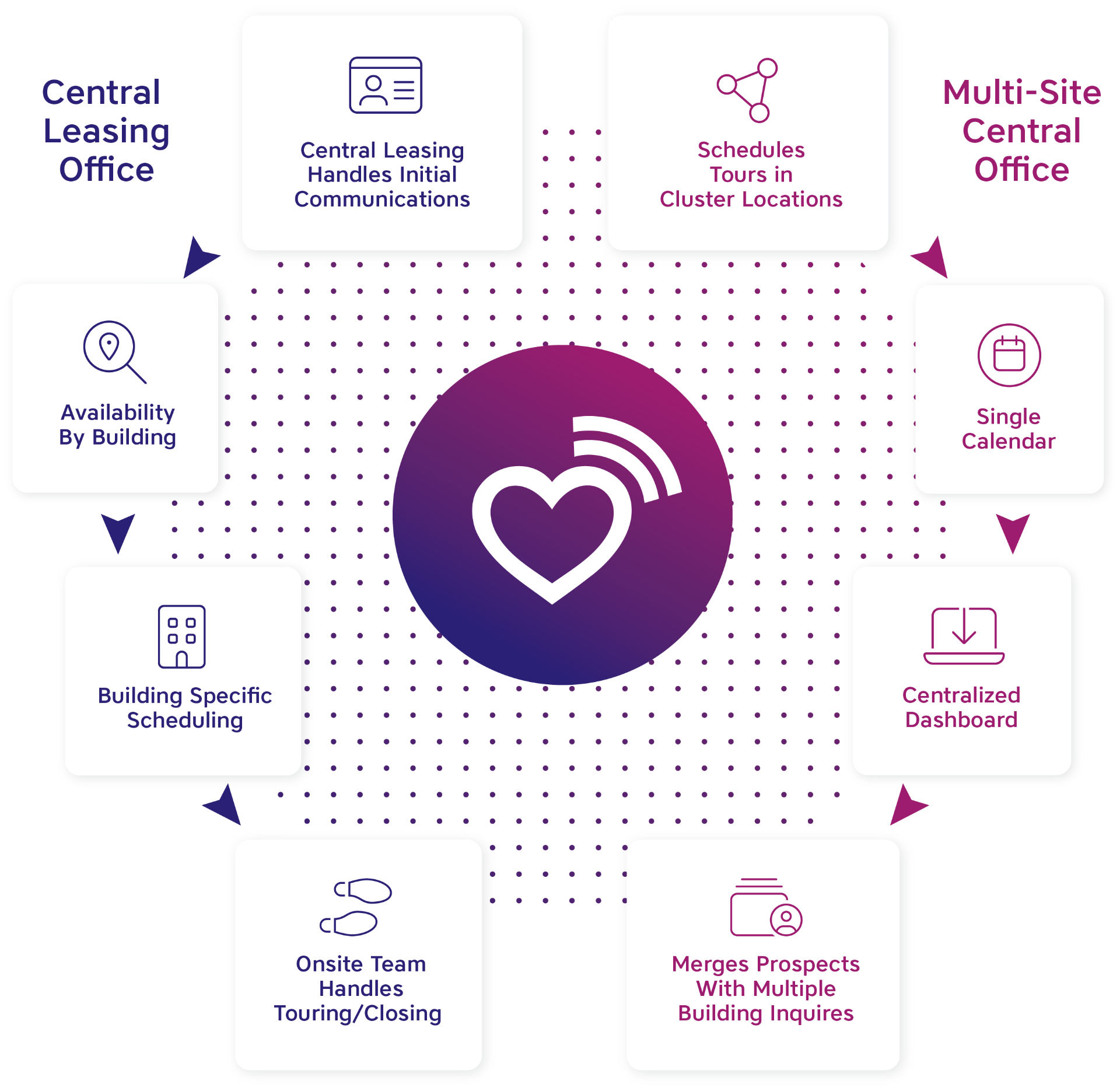 With the transition away from onsite teams at every property, to centralized leasing models, creating a connected workflow has become more critical than ever. ILoveLeasing® works with all types of leasing office configurations.